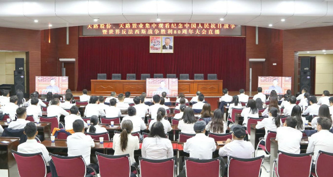 9月3日上午,紀念中國人民抗日戰(zhàn)爭暨世界反法西斯戰(zhàn)爭勝利80周年大會在北京天安門廣場隆重舉行。中共中央總書記、國家主席、中央軍委主席習近平發(fā)表重要講話并檢閱受閱部隊。西藏天路股份有限公司通過集中觀看、分散組織等形式,組織干部職工觀看大會現場直播實況,共同回顧光輝歷史、緬懷革命先烈、凝聚奮進力量。
